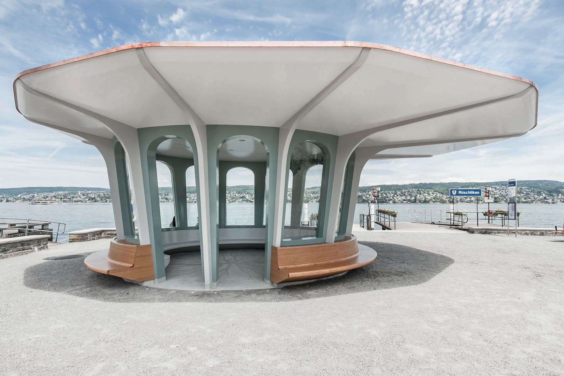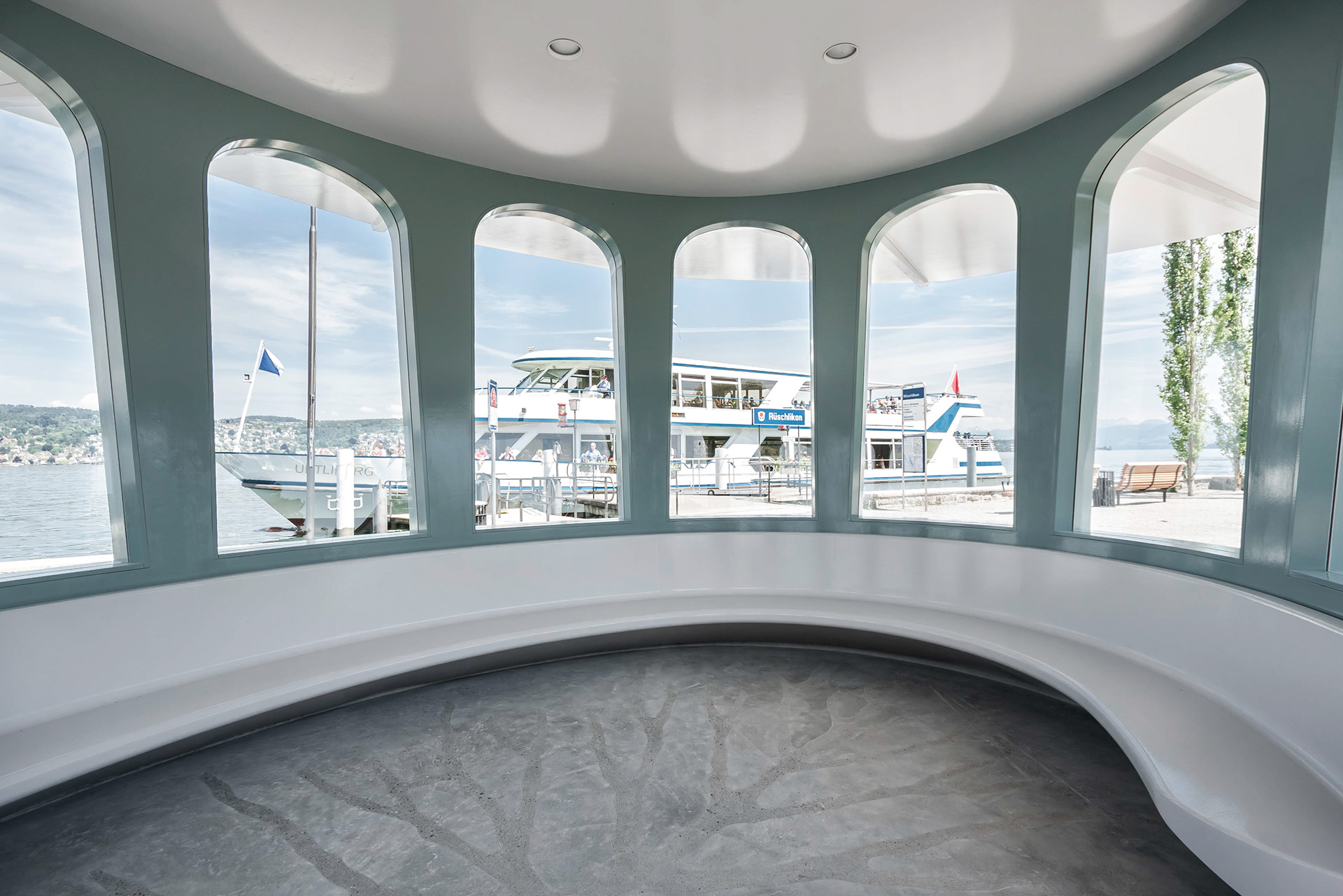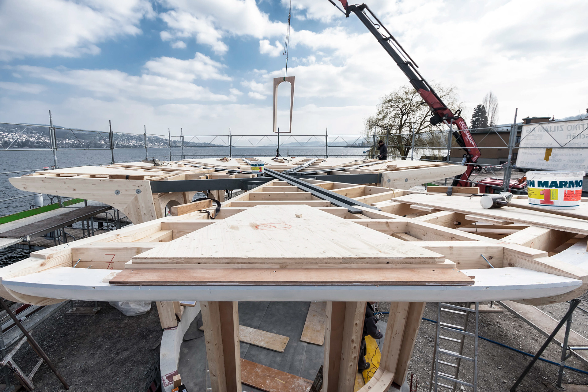 Construction of the new boat-station house on the Lake Zurich in Rüschlikon. Architecture by Naomi Hajnos GmbH.