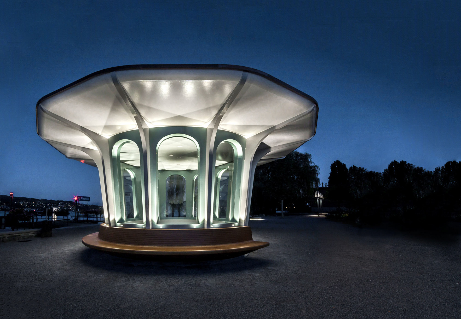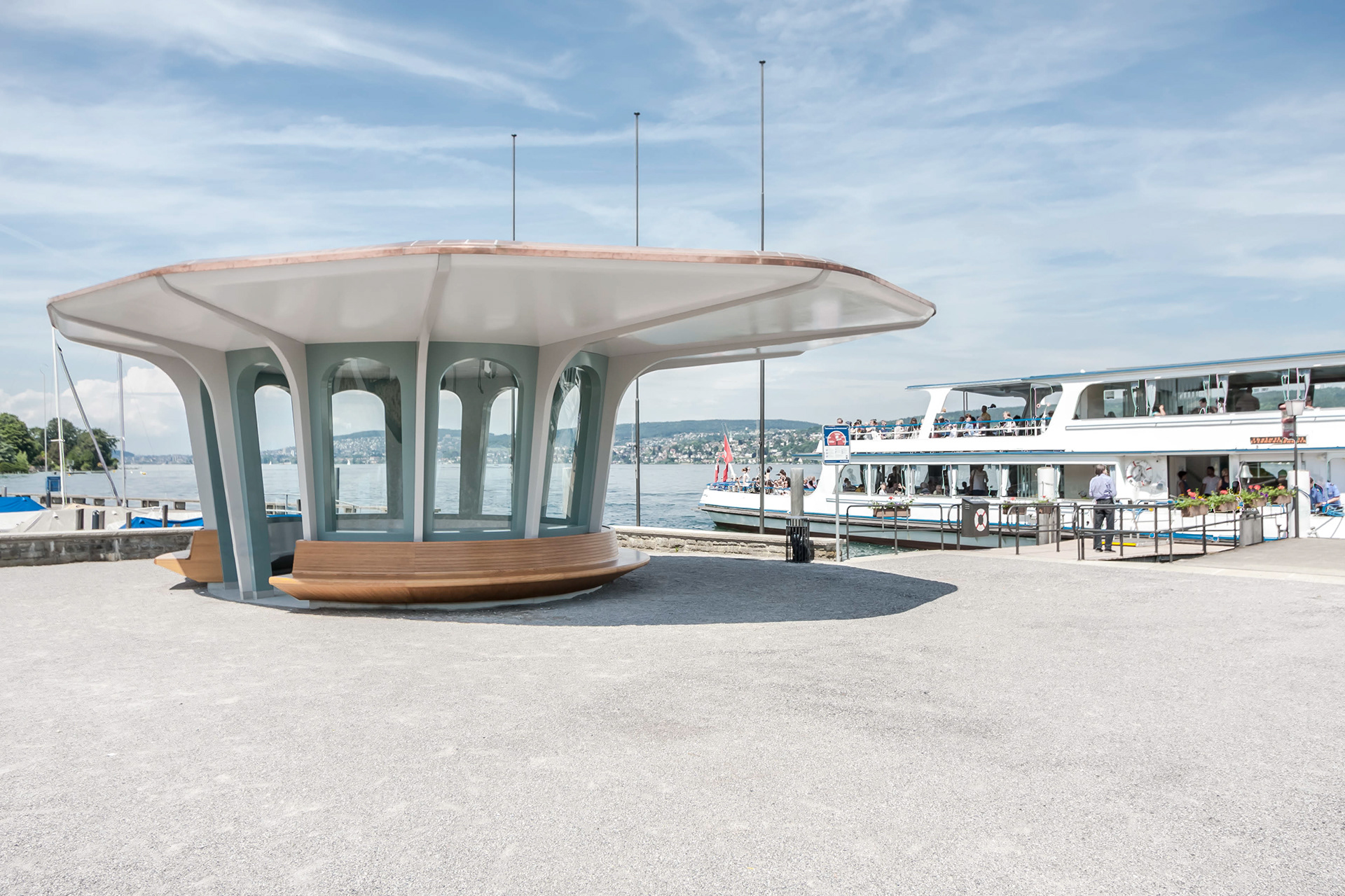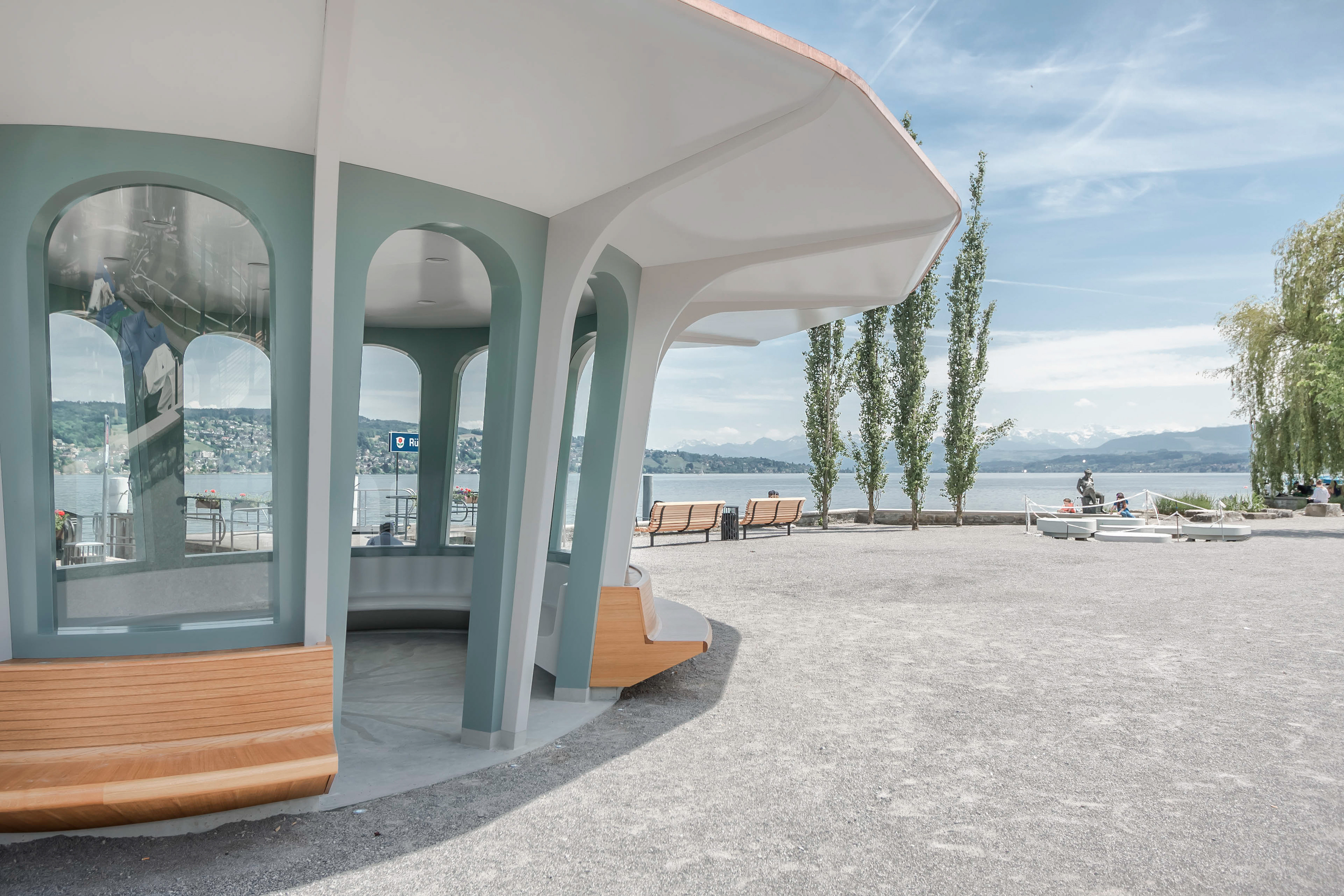 Construction of the new boat-station house on the Lake Zurich in Rüschlikon. Architecture by Naomi Hajnos GmbH.