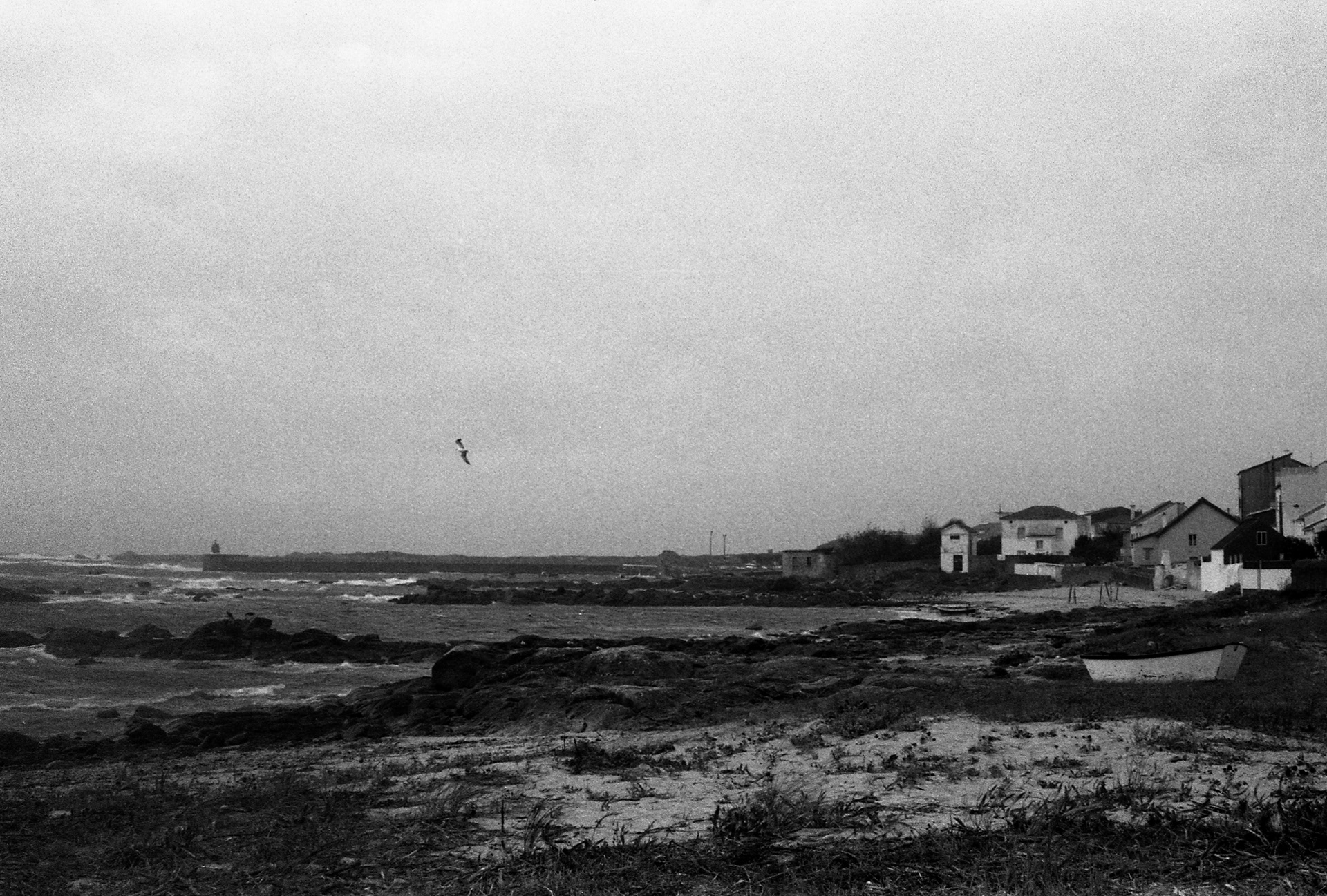 Black&White analog photography in Galicia, Spain. Weather condition windy with rain.